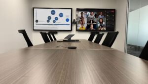 A recent installation at a local engineering companies Boardroom. We installed a dual 85” Sony Displays with a Logitech rally plus conferencing...