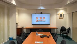 A boardroom video conferencing fit out including an EduTouch Interactive Panel, Logitech Rally and Hanging Microphone Conferencing System. This...